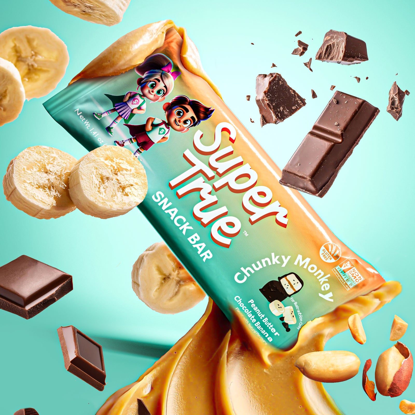 A soft, delicious peanut-buttery, banana packed bar folded with semi-sweet chocolate chips that will fuel your little monkey to take their next swing onto the next adventure.